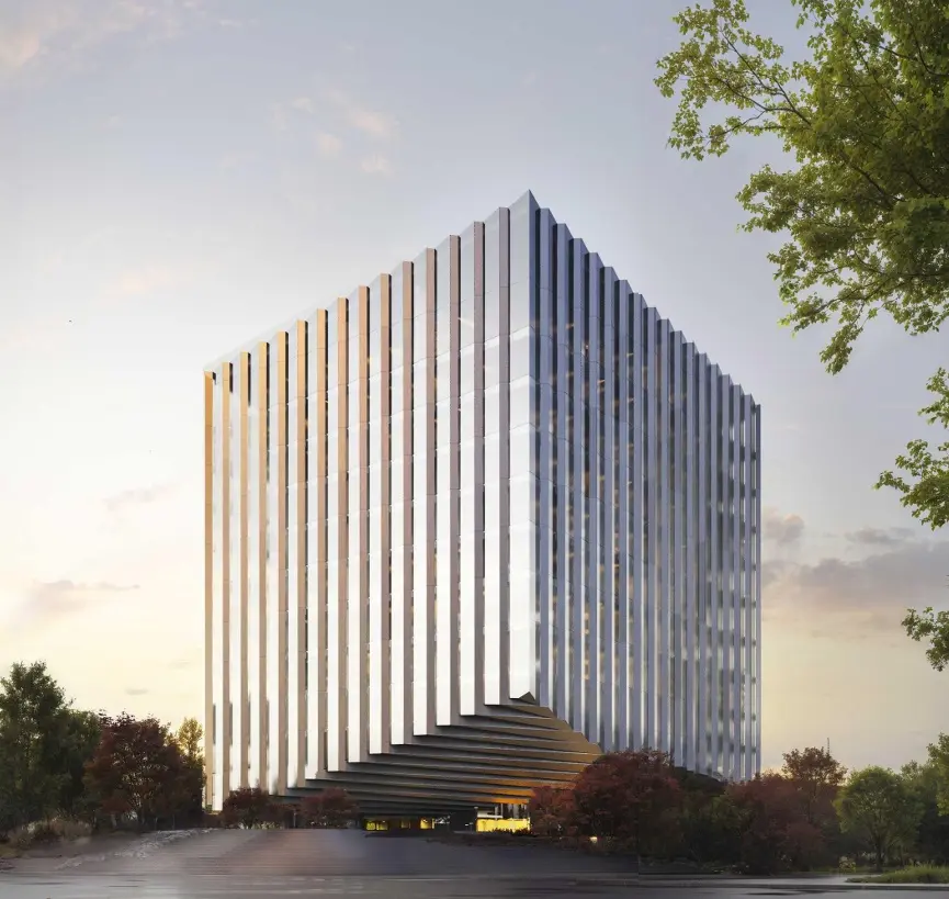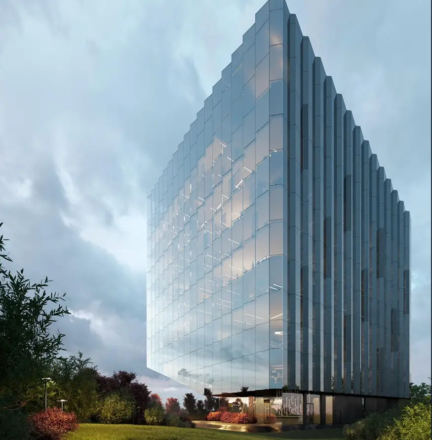 - Объект позиционируется как альтернатива деловым районам с высокой плотностью арендаторов и интенсивными транспортными потоками. Архитектурное решение направлено на создание узнаваемого облика.