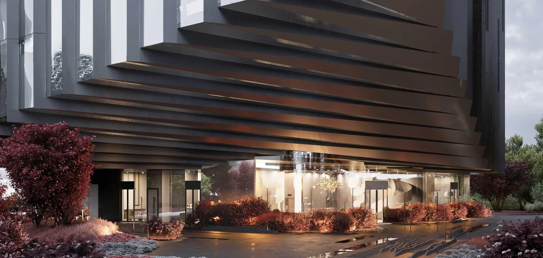 - Лобби и зоны общего пользования выполнены в дизайнерской отделке, подчёркивающей архитектурные особенности здания.