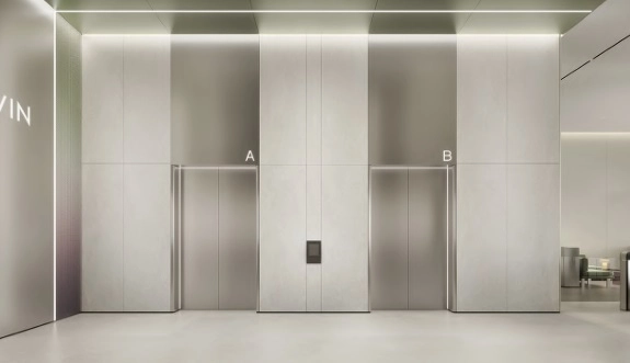 - Скоростные лифты: бесшумные лифты с системой вызова по этажу назначения, время ожидания — до 30 секунд.