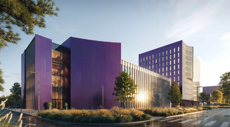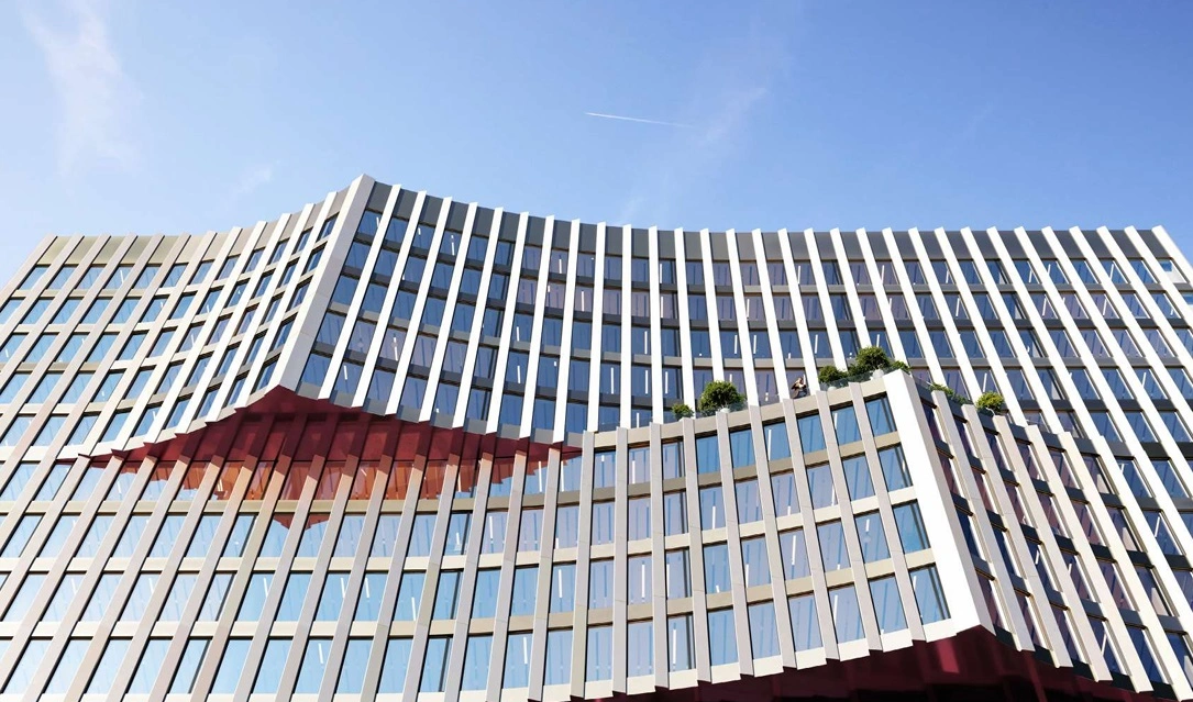 - Здание с рельефными фасадами, панорамным остеклением и открытыми входными группами становится новой визуальной доминантой района, создавая ощущение простора и свободы.