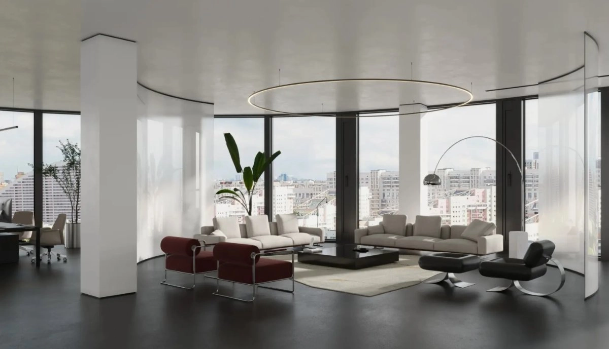 - Панорамное остекление: Все три башни полностью остеклены, что обеспечивает максимальное проникновение естественного света и формирует круговой обзор с каждого этажа. Из окон открываются впечатляющие виды на парк «Ходынское поле» и панорамы города.