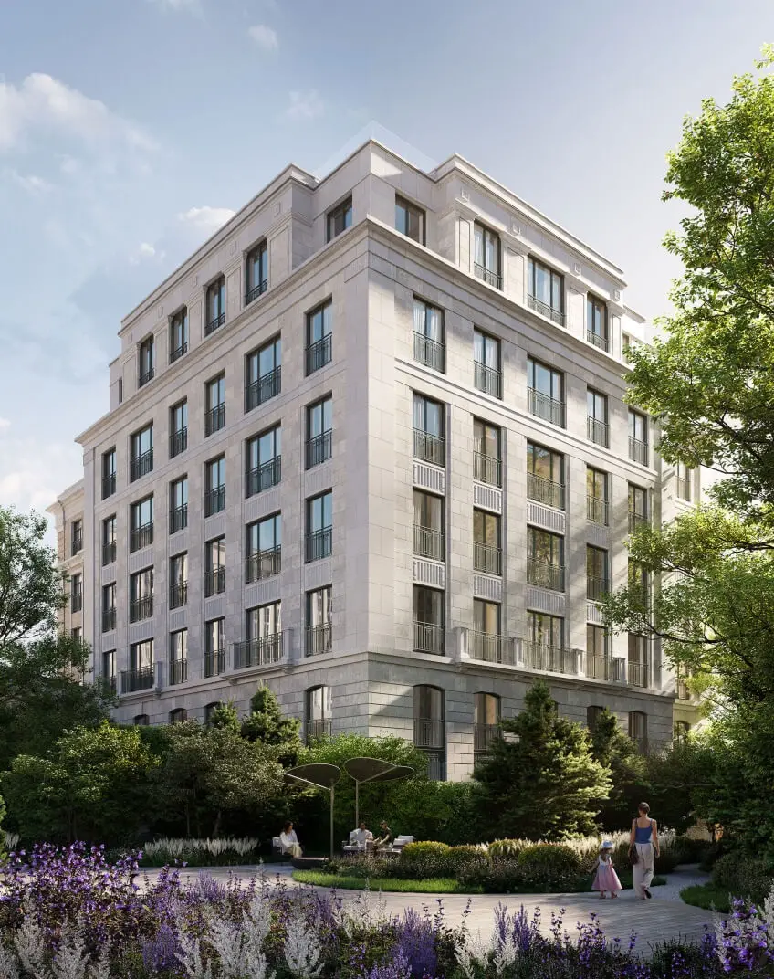 - Ансамбль ведет утонченный диалог эпох: строгая гармония французской классики, лаконичный язык индустриального модерна и изысканные акценты ар-деко создают неповторимую атмосферу. Высокие светлые окна, геометричные фасадные линии, благородные материалы — натуральный камень, кирпич, патинированная бронза — подчеркивают статус и безупречный вкус.