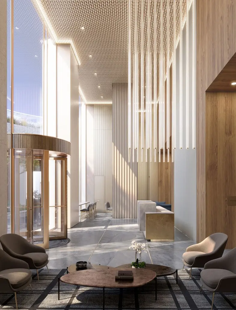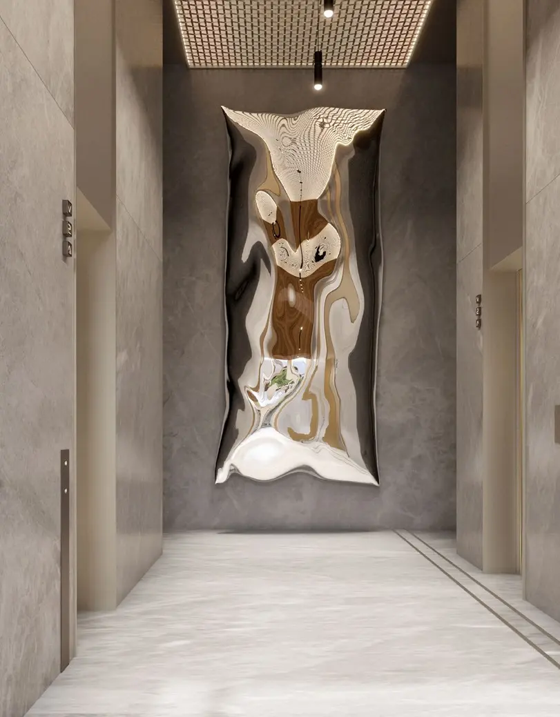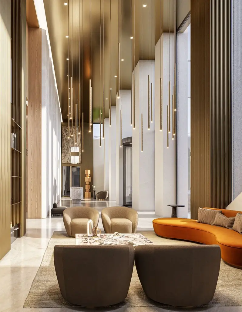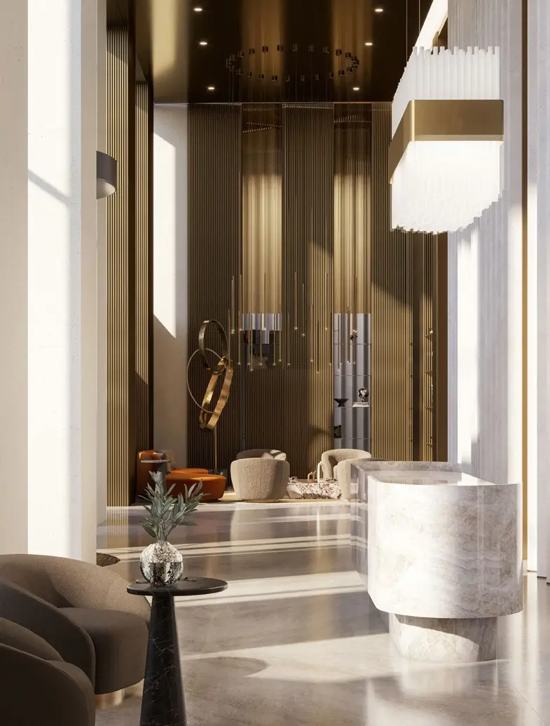 - Лобби оформлены мрамором, деревом и вертикальным озеленением.
