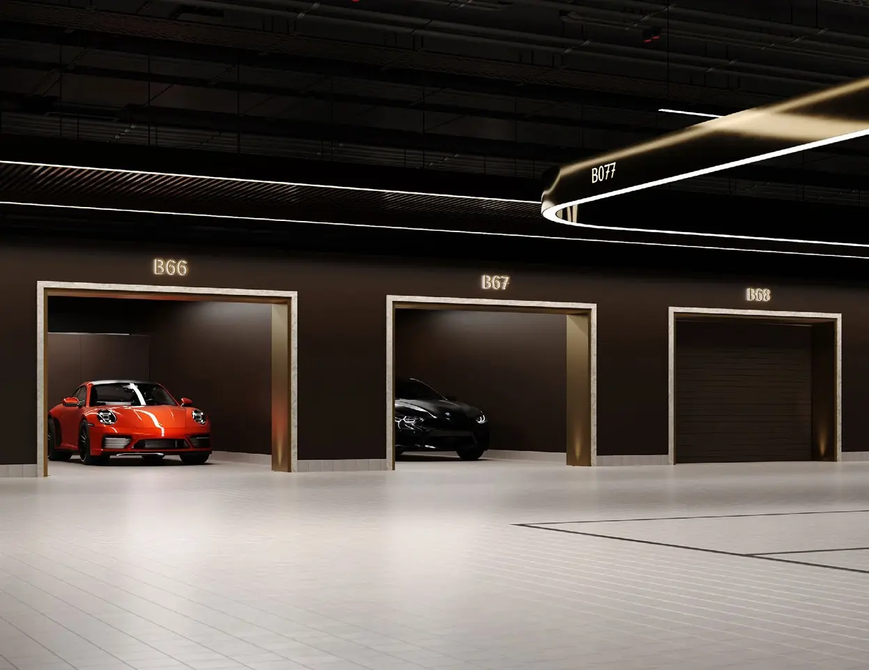 - Подземный паркинг. Для резидентов предусмотрены различные форматы парковочных мест, включая семейные, лоты с увеличенной площадью, мотоместа, велопарковки, а также келлеры (кладовые) для хранения сезонных вещей.