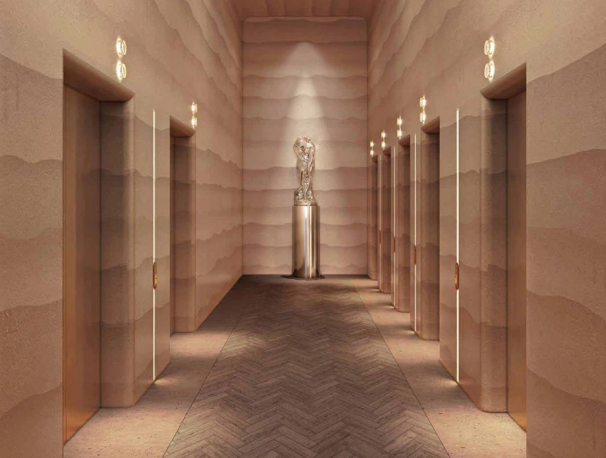 - Престиж и приватность: Изолированный вход и отдельное лобби для офисной части. Интерьеры общественных зон отделаны натуральным терраццо и дополнены арт-объектами.